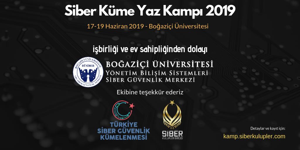 17-19 Haziran 2019 tarihlerinde, Türkiye Siber Güvenlik Kümelenmesi (http://siberkume.org.tr) ilk siber kampını üniversitemizde düzenledi.